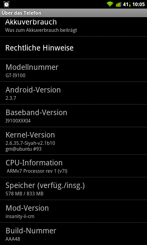 mich würde schon interessieren wie dieser kernel mit insanity läuft. bin gerade die kombi criskeloRom V22 mit siyah 1.8 am testen. akkulaufzeit 8h und verbrauch bei 80%...nicht schlecht