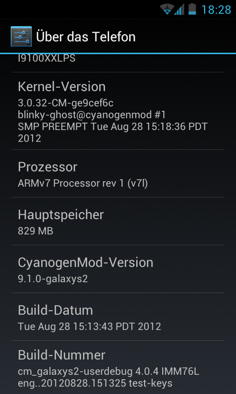 Als ROM läuft CM9 in der letzten Stable (9.1).