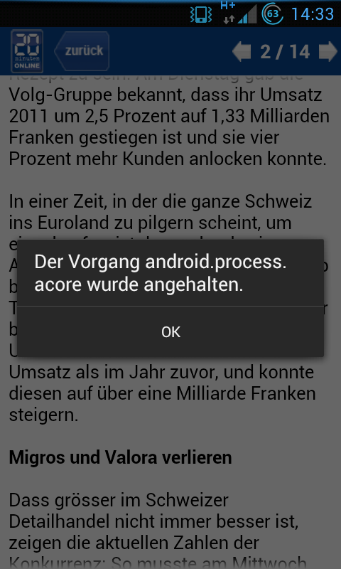 - Oft Freezt die ROM für ca. 5-10s und danach erscheint Fehlermeldung (Siehe Bilder)
