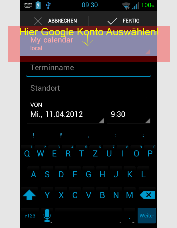 Kalender Sync geht bei mir Wunderbar ! Bitte die einstellung Beachten das auch dein Google Account im Kalender gewählt ist !!
