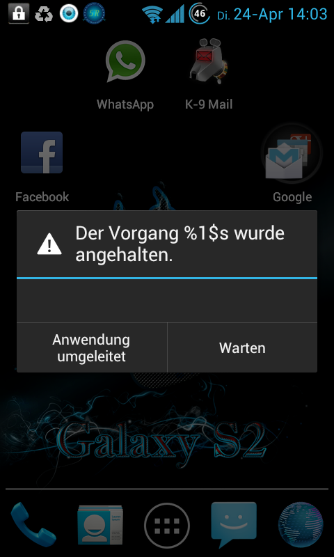 Nach der Installation und den ersten start der GUI kam eine Meldung Vorgang %1$s wurde angehalten ... blendete sich dann aber gleich aus ...