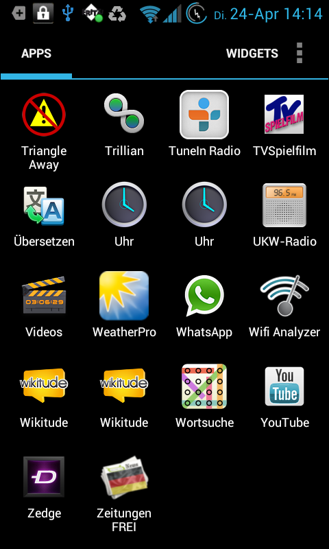 Wikitude und Uhr sind 2x als App ausgeführt (doppel Icon)