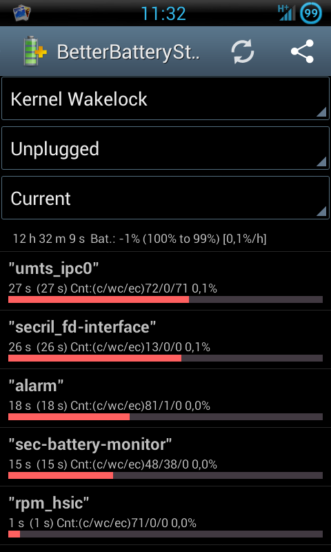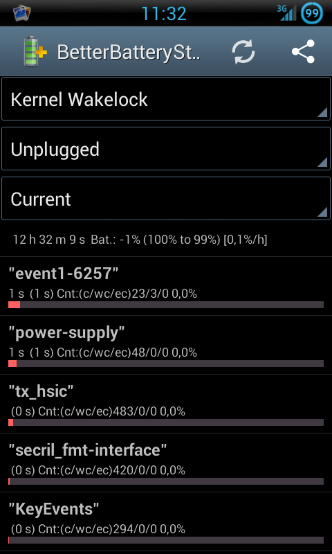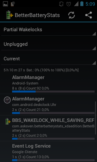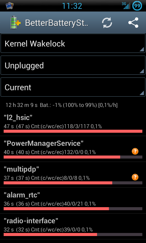 Ich habe durch ausprobieren der ganzen verfügbaren Modems getestet, welchen Verbrauch und Empfang ich auf dem Handy habe und als Hilfe über BetterBatteryStats die Häufigkeit und Zeit bestimmter Wakelogs herangezogen, die letztendlich den Ausschlag für das Modem XXLS8 gegeben haben. Gerade diese Wakelogs: