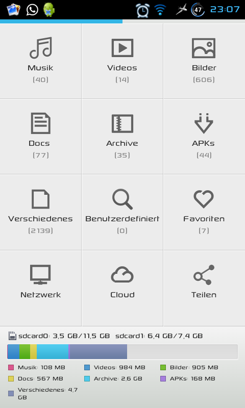 Betrifft aber scheinbar nur den mitgelieferten dateimanager, mit mifile Explorer sowie im System/Speicher wird bei mir alles angezeigt wie es sein soll.