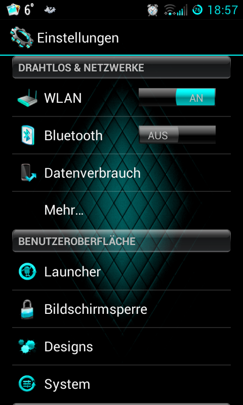 Ich hab danach noch meine Mods (die "alten" 5.3.1-Mods) einzeln installiert - weil ich zu spät gesehen hab, dass ausser eine NeatEFS-Sicherungs-App noch eine NeatROM-App im Drawer auftaucht. mit der die ganzen Mods (teilweise mit Bildvorschau) ganz einfach heruntergeladen und installiert werden können: Mods, Apps, Themes und Modem-Auswahl.