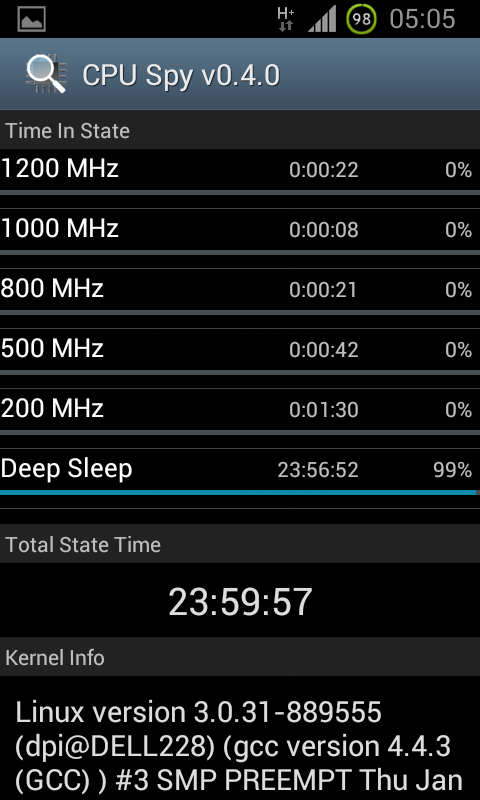 Hier noch mal ein Update über den DeepSleep Verlauf auf meinem Handy, ermittelt über einen ganzen Tag, bzw. 24 Stunden Nichtnutzungszeit und eingeschalteter Mobiler Datenverbindung (Internet):