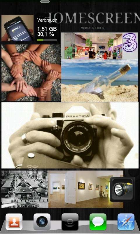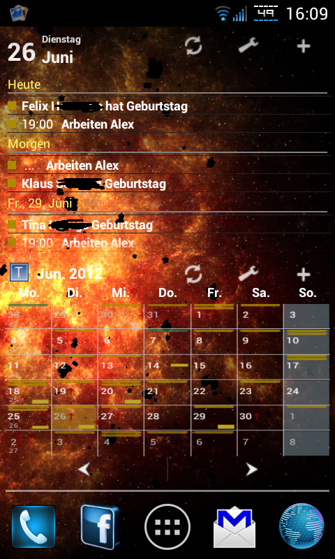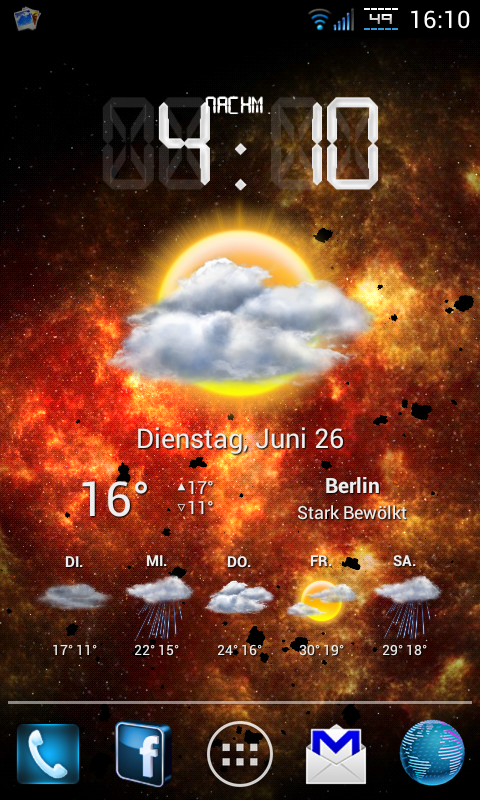 Das Design ist "Mixer ICS", der Hintergrund ist das LiveWallpaper "Inferno Galaxy"