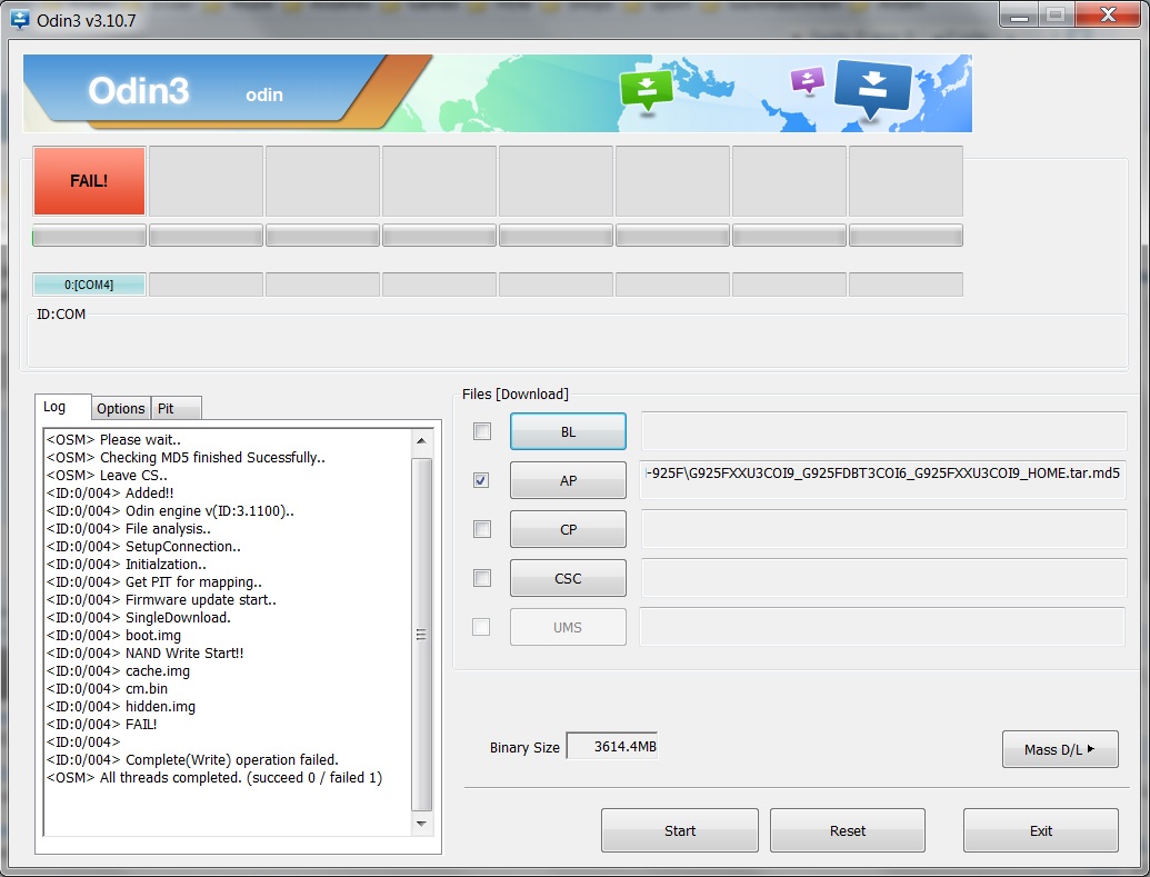 Lade dir mal mit SamFirm die 4tlg FW herunter, dann klappt es bestimmt.