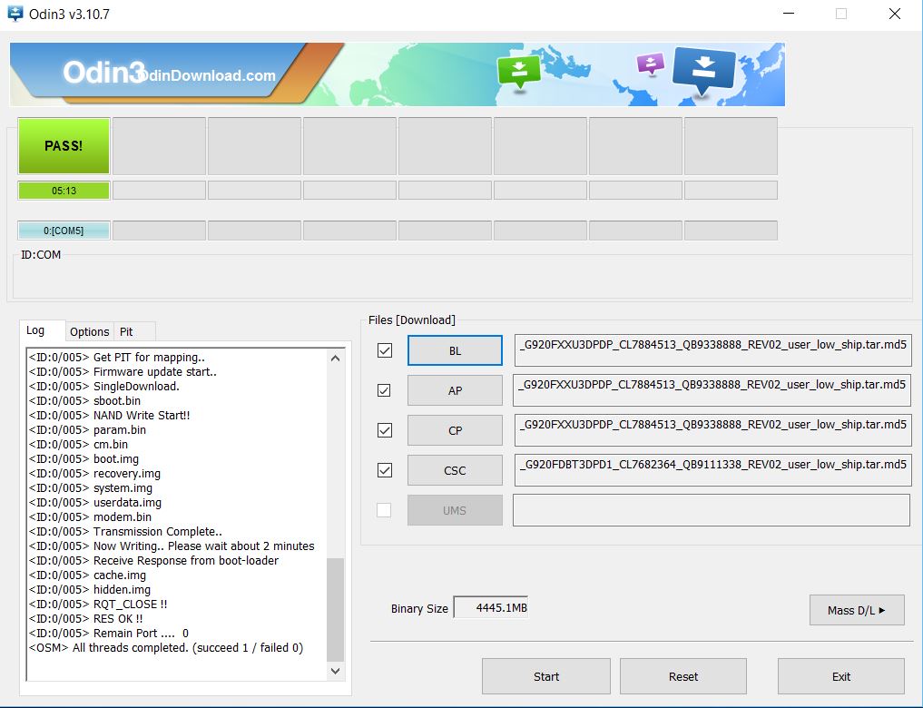 Aber das grüne PASS kommt am Ende des Flashvorgangs bei Odin?