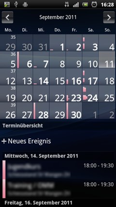 Die Monatsansicht ist jetzt geteilt mit der Terminübersicht. Diese Terminübersicht kann aber jetzt nur noch maximal ein Monat in die Zukunft gehen. Ausserdem gibt es keine eigene Terminübersicht mehr.