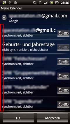 Hier im markierten Teil wurden vorher die Kalenderfarben angezeigt, was jetzt nicht mehr der Fall ist. Sie werden anscheinend nicht mehr synchronisiert.