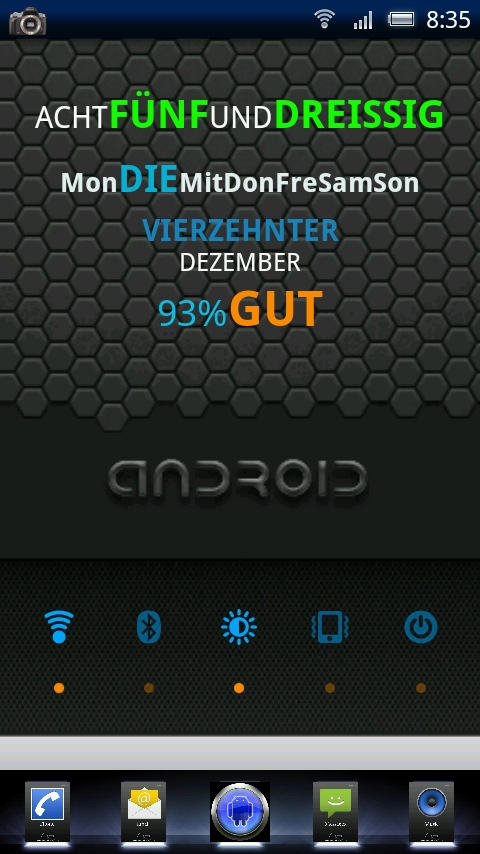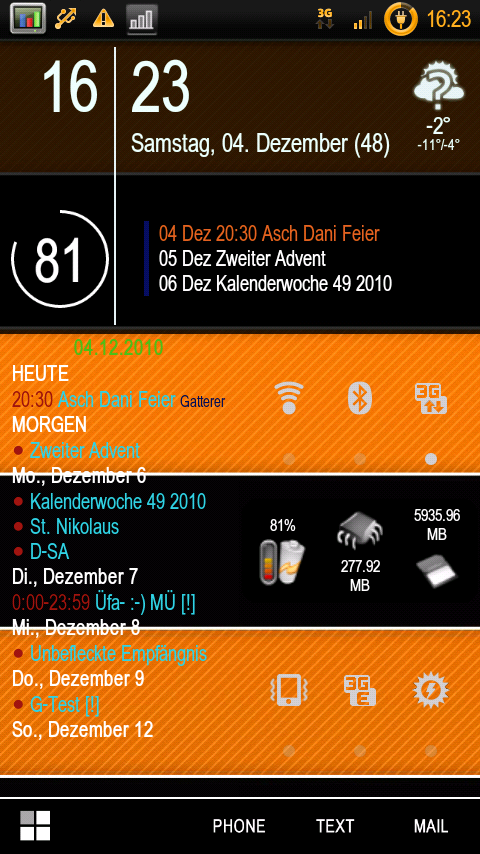 unter der uhr links, hast ein schönes batterie widget - wo bekomm ich sowas - es hat die größe, die ein alter sack wie ich, auch ohne brille lesen kann gg