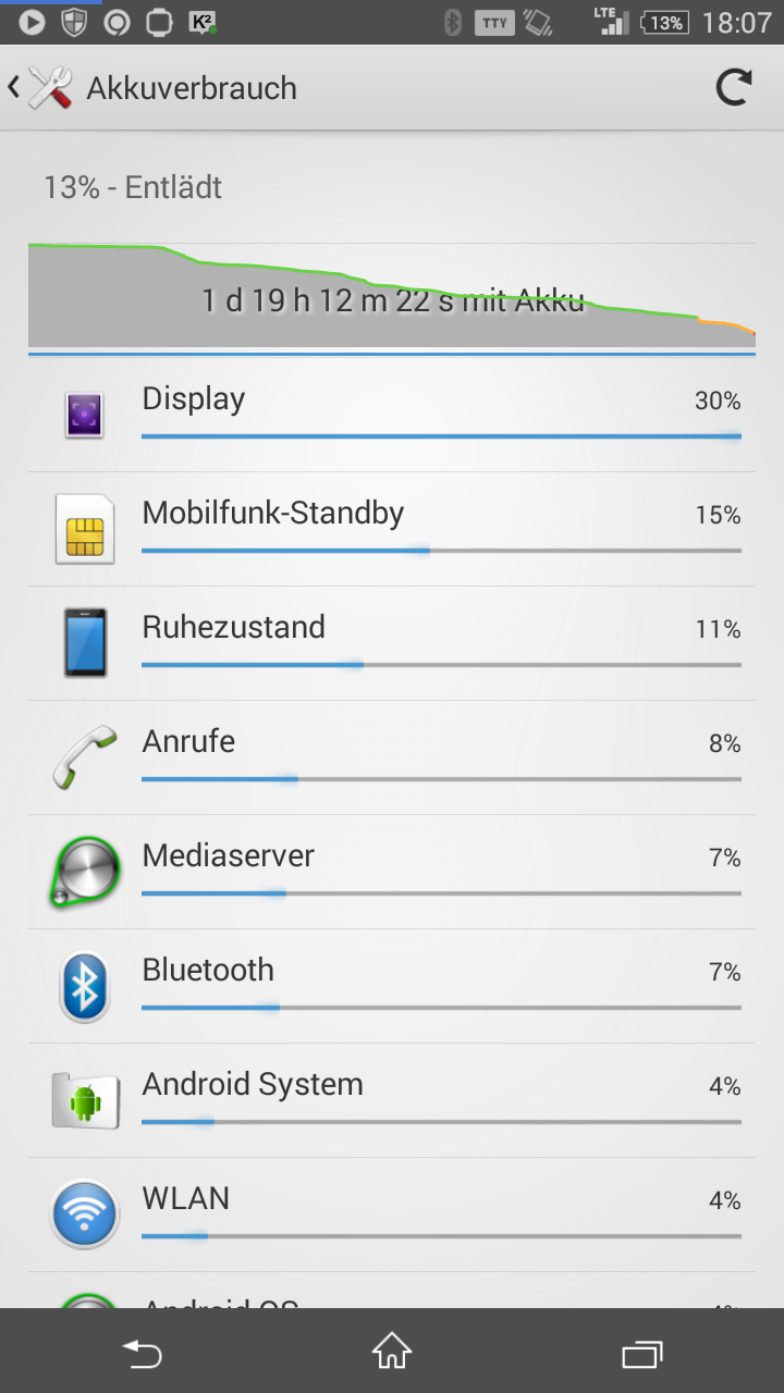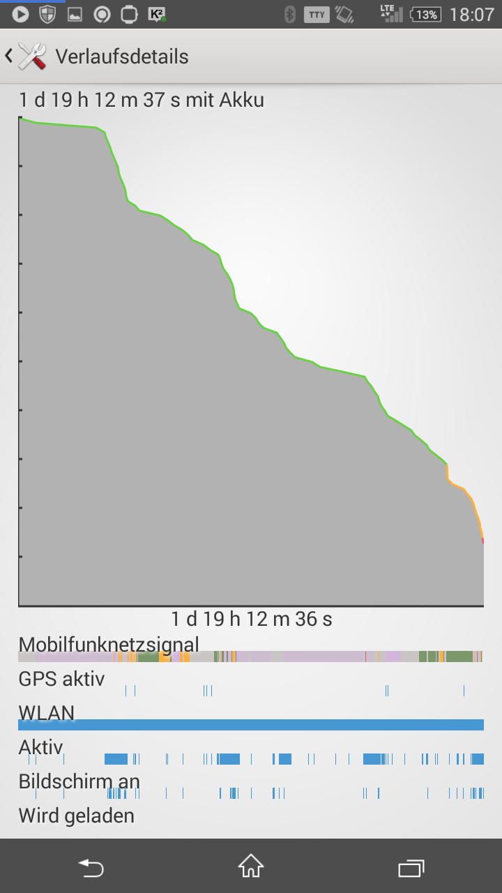 Jup, so ähnlich sieht's bei mir auch immer aus. Ich hab meist etwas mehr Display-on Zeit, dafür kein 4G. Nach ziemlich genau 2 Tagen ist der Akku leer.