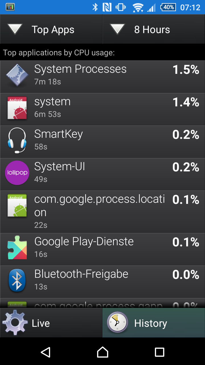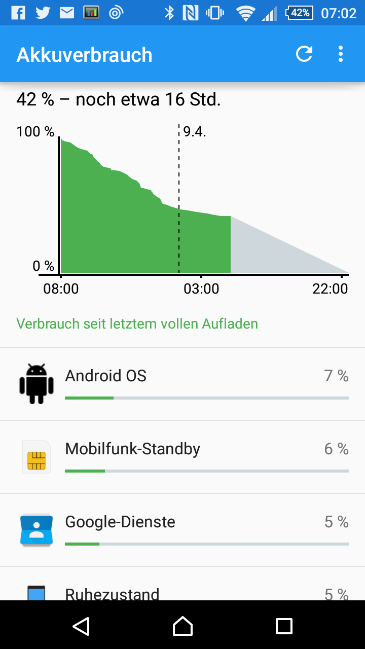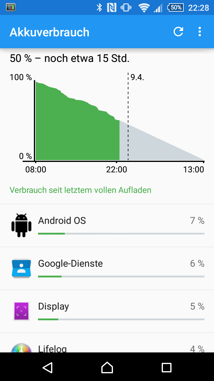 Weder bei Akkuverbrauch noch bei Akkuverbrauch von Apps habe ich irgendwas auffälliges gefunden.