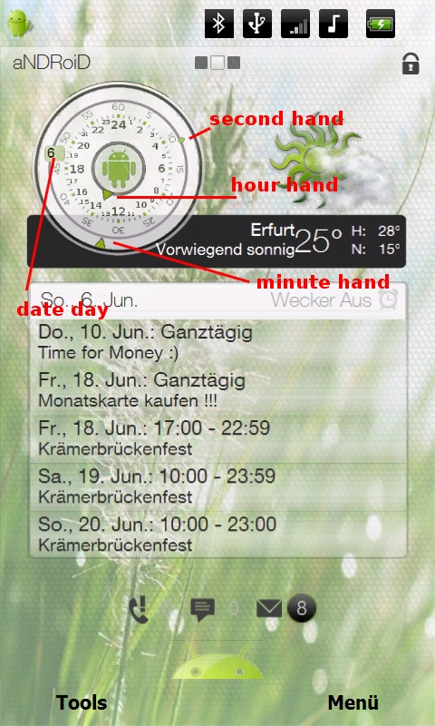 24 stunden anzeige mit datum und sekundenzeiger als grünen punkt :p