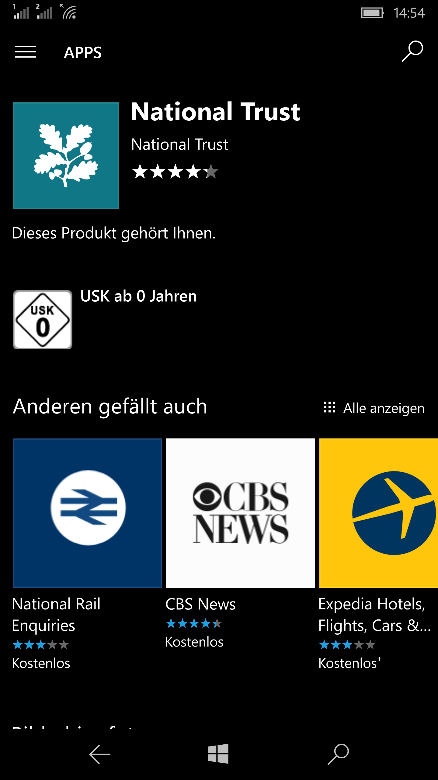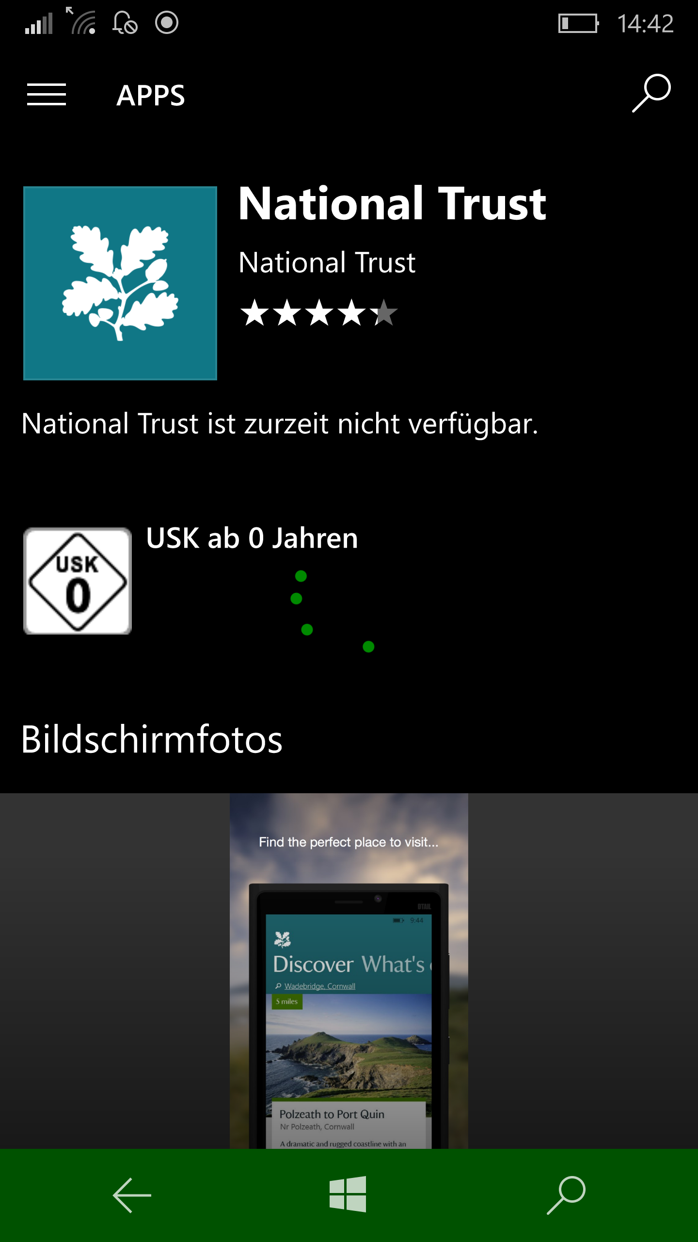 So, und noch etwas: Die App "National Trust" (https://www.microsoft.com/store/apps/9wzdncrd8f7p) kann ich zwar über den Link aufrufen, es kommt aber nur die Anzeige, dass die App mir gehören würde. Der Installationsbutton erscheint nicht - auch nicht nach längerem Warten. Vor dem HR hat die App unter CU noch einwandfrei funktioniert (war jedoch schon vor dem Update installiert). Langsam denke ich wirklich, der HR hat die ganze Sache bei mir nicht verbessert, sondern eher verschlechtert...