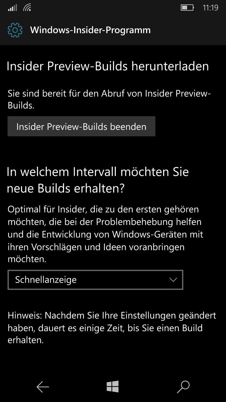 Bin gerade mit dem Wdrt mit meinem 950 auf Creator zurück. Hab keine Benachrichtigungen auf dem Sperrschirm bekommen, dass geht nicht, hab deswegen schon einiges verpasst. Ich warte jetzt 1 - 2 Builds ab und steig dann wieder mit ein.