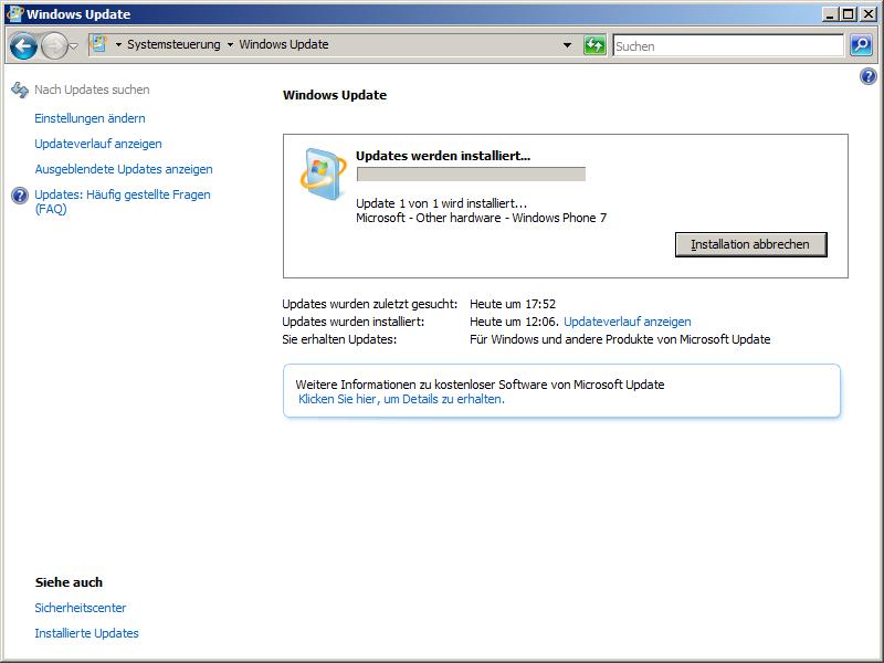 Edit: Über Zune auch kein Update, sagt mir, ist aktuell. Allerdings wurden gestern iwelche Updates automatisch geladen und installiert, keine Ahnung, was dabei war. Ich guck mal in den Updateverlauf