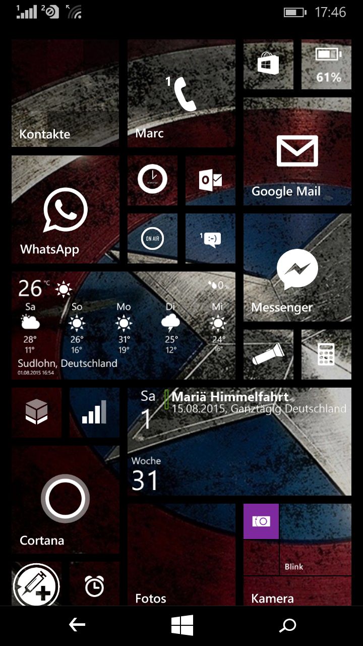 Hier mein Startscreen. Ich nutze ihn seit ca. 1/2 Jahr, seit dem ich mein Lumia 640 habe.