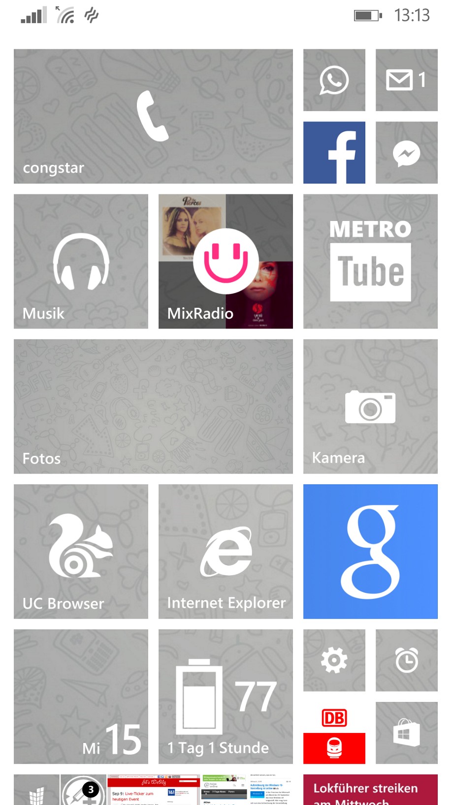 Hör mal, kannst du vielleicht erklären wie du das Zifferblatt als Tile auf den Screen bekommst? :o wenn ich einfach nur die App dran pinne dann ist da keine uhr so wie bei dir.