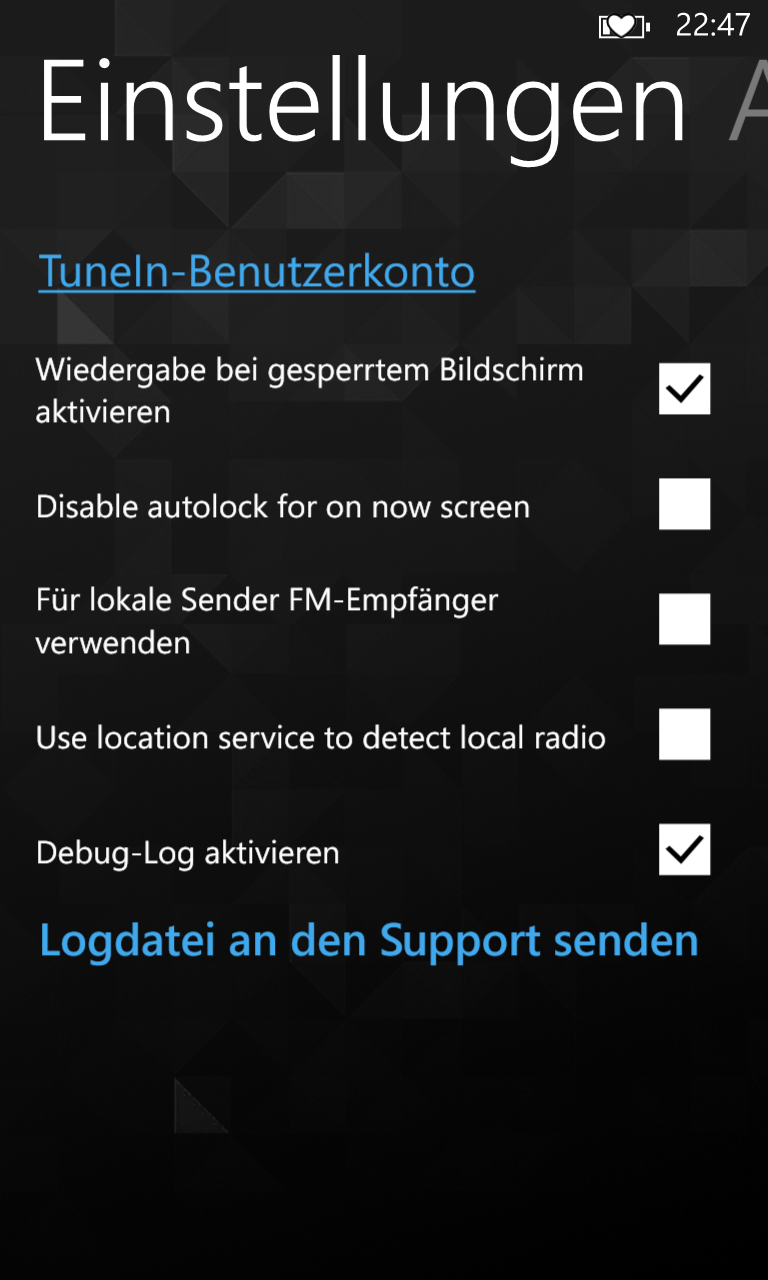 Einmal WhatsApp gestartet, zickt TuneIn rum.