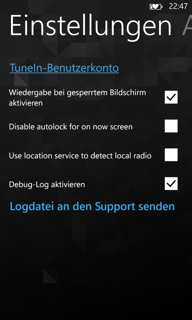 Die TuneIn Version bei 2.3.0.0 hat aber weniger Funktion